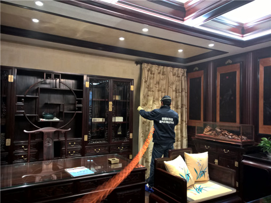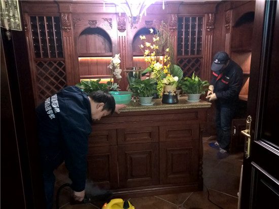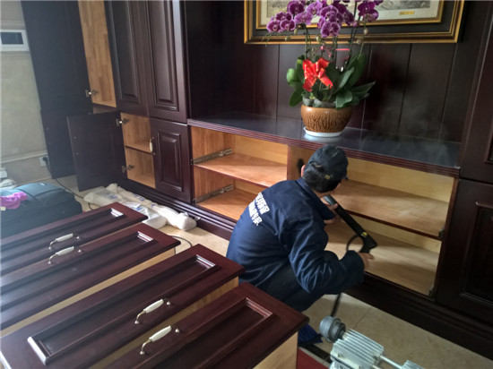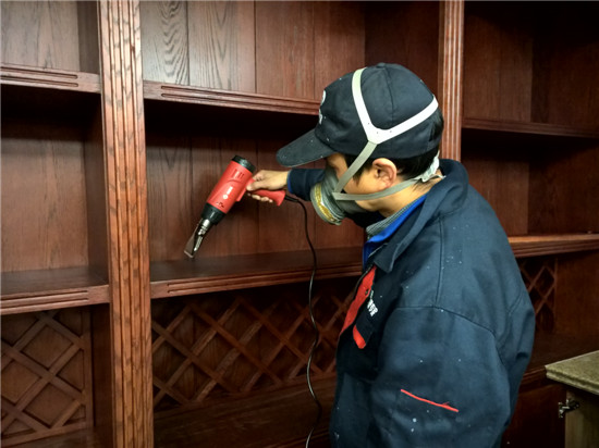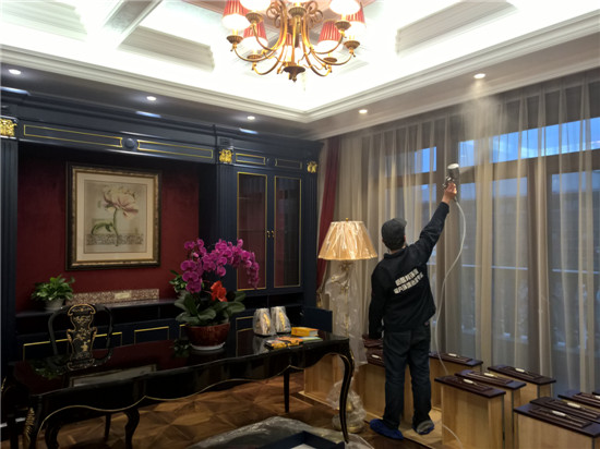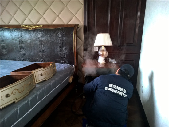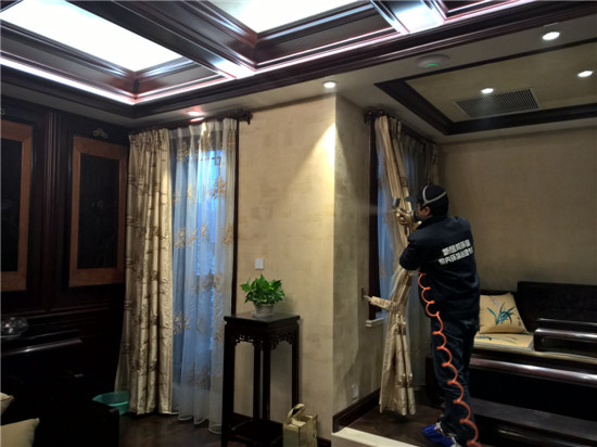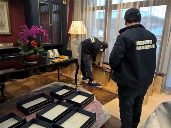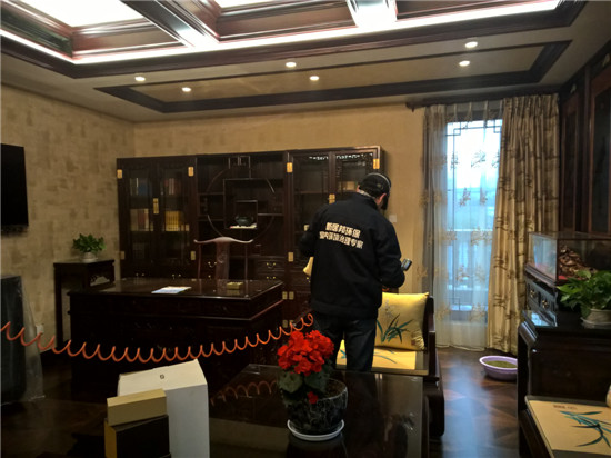 本次由陜西新居邦環保科技有限公司承接的西安曲江皇家花園別墅全屋空氣凈化服務,歷時三天,總甲醛治理建筑面積超1000平方,共五層。新居邦環保技術團隊在充分研究別墅高檔豪華裝修、全屋進口家具、全實木花梨木成套柜體、實木地板等全屋環境及污染源構成后,分別采取高溫熱解配合熱風槍祛除實木家具外飾油漆異味、高分子聚合技術無縫覆蓋軟體家居、立美凈除醛凈味雙效觸媒高效噴涂木制柜體、立美凈超活性納米光觸媒全屋長效凈化等綜合施工技術,從空氣異味釋放源、甲醛長期釋放源等源頭上解決并提升空氣質量。