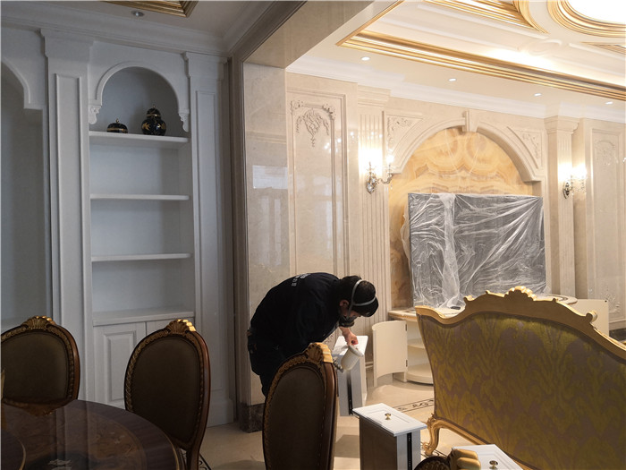 曲江和園500平方別墅空氣凈化治理除甲醛,全面清除裝修產生的甲醛、苯、甲苯、二甲苯、TVOC等室內有害氣體,空氣明顯改善,異味消除,各個指標符合GB/T18883人居環境標準要求。下面是具體施工過程: