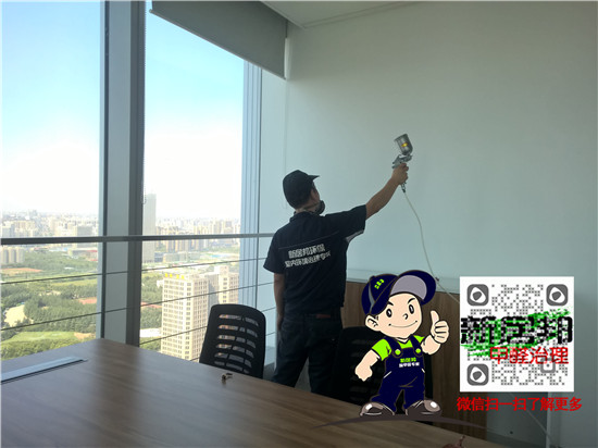 本工程為位于高新綠地中心45層的陜西恒通果汁集團股份有限公司辦公室,整體除甲醛凈化施工面積為2100平方,全密封玻璃幕墻設計,通風情況不佳,室內(nèi)異味明顯,新居邦環(huán)保科技的專業(yè)技術服務能力贏得了集團公司領導的認可,本次辦公室甲醛治理,室內(nèi)空氣凈化工程共2天,經(jīng)過處理以后室內(nèi)空氣質(zhì)量獲得極大改善,順利通過CMA第三方驗收,以下是部分施工現(xiàn)場照片